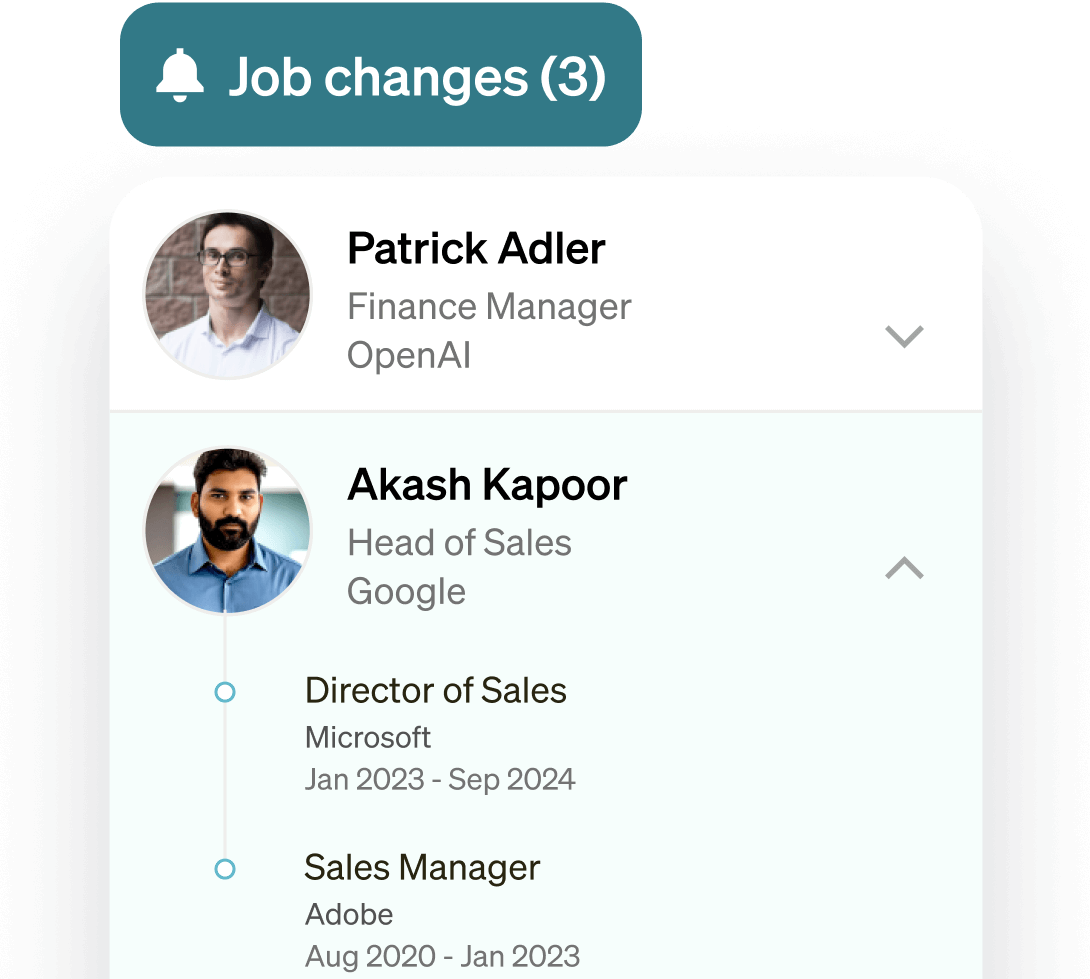 Discover our workflowWe continuously track and monitor all of your prospects for job changes and immediately alert you with any new job titles or company changes.
